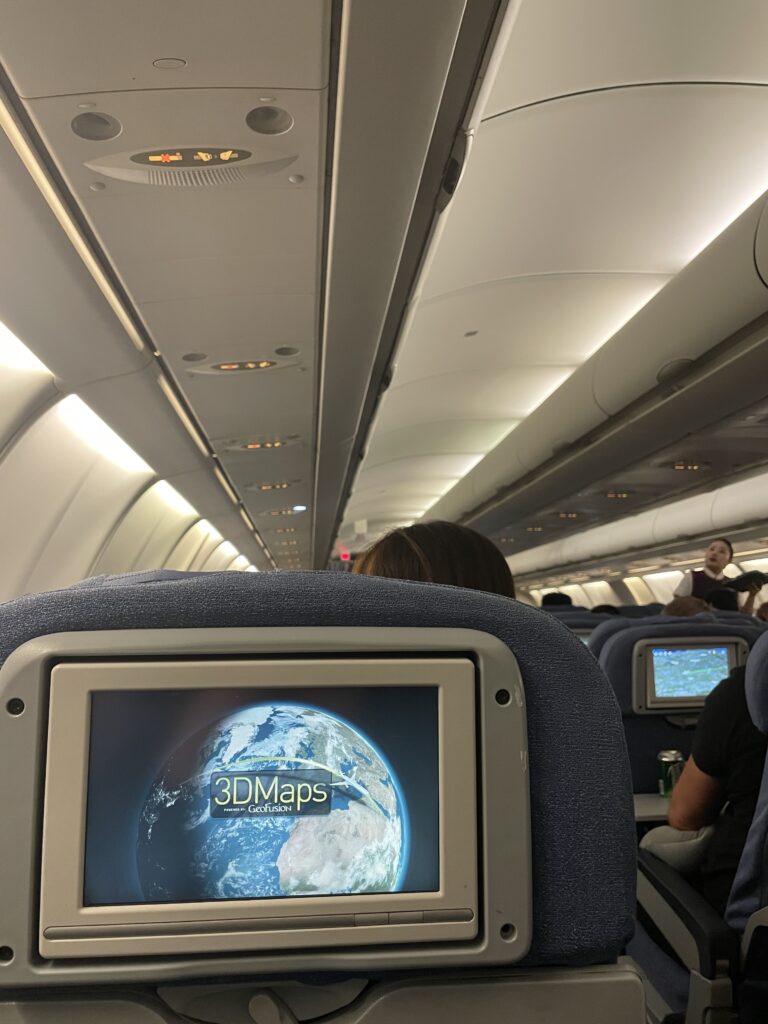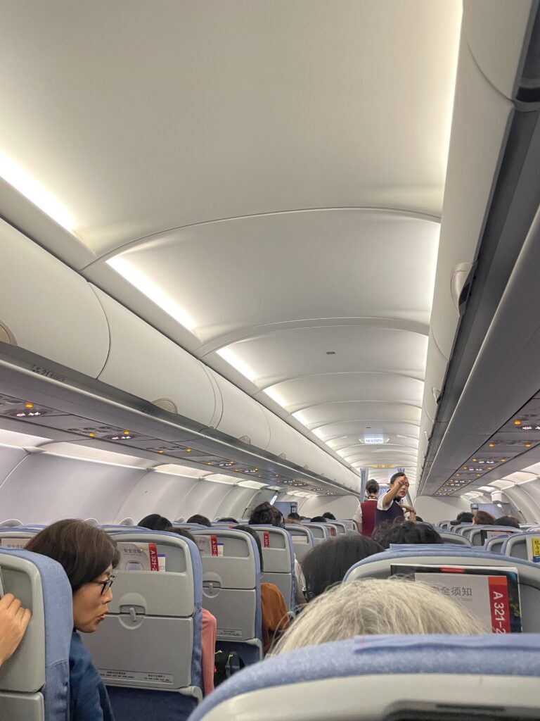 今日気づいたのは、リクライニングが全然倒れないことと、座席のシートがとにかく薄いこと。後ろの人が座席ポケットの中をあさるたびにお尻がムズムズします笑