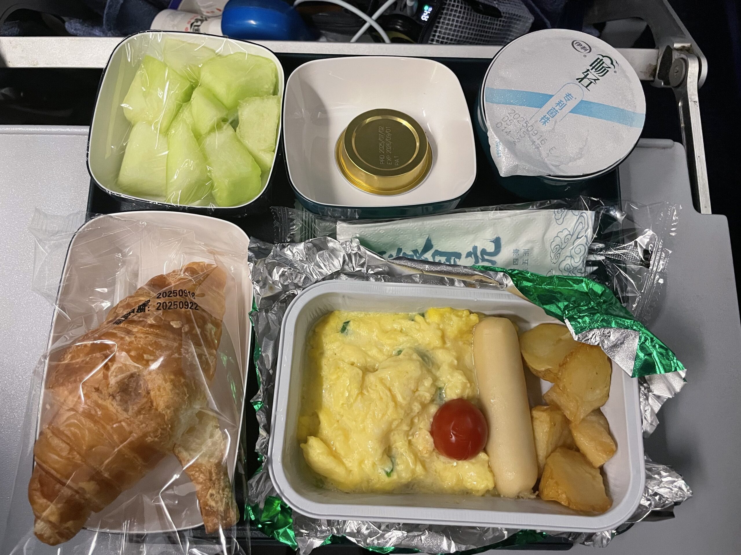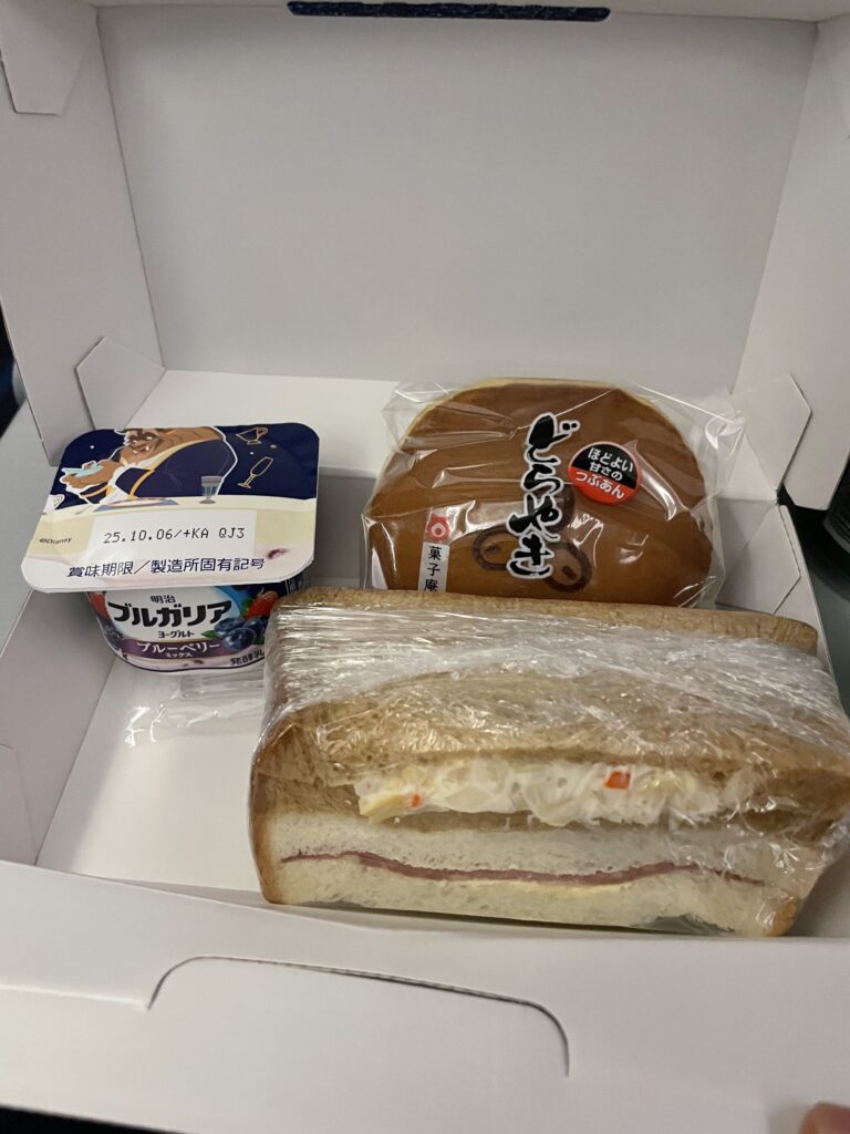 午前3時に出発した後、1時間ほどで1度目の機内食が来ました。