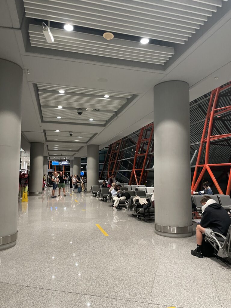 行きの乗り継ぎは3時間ほど。定刻の0時5分よりも20分ほど早く到着したためさらに余裕がありました。